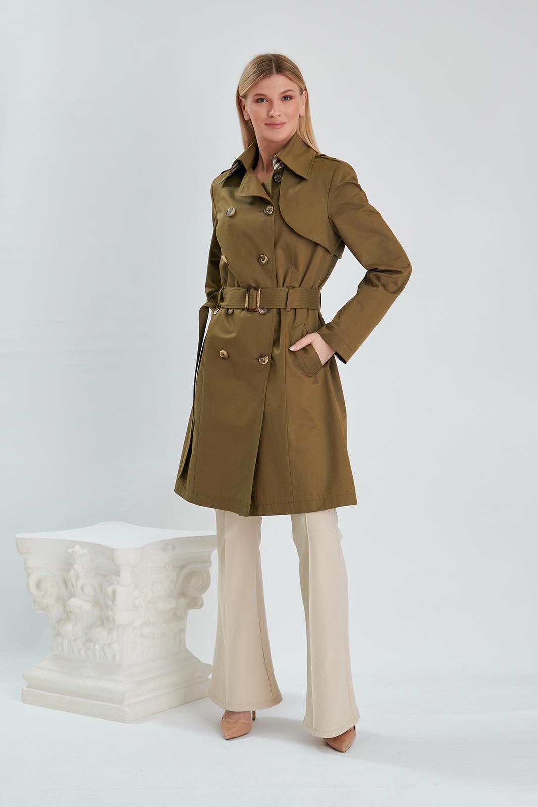 Trenç Belden Büzgü Detaylı Kadın Trençkot 3535