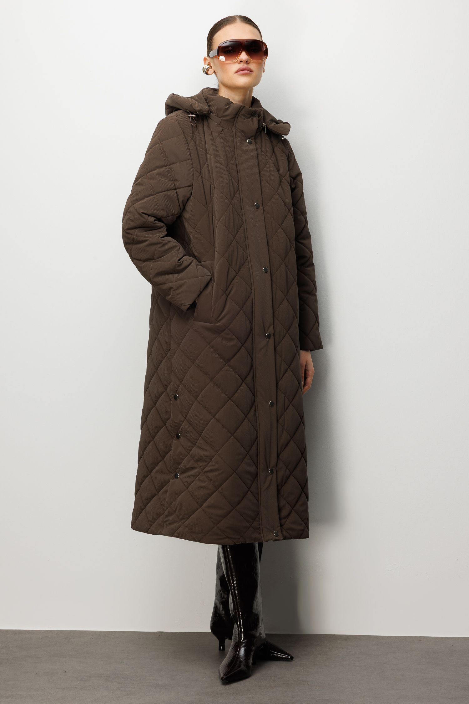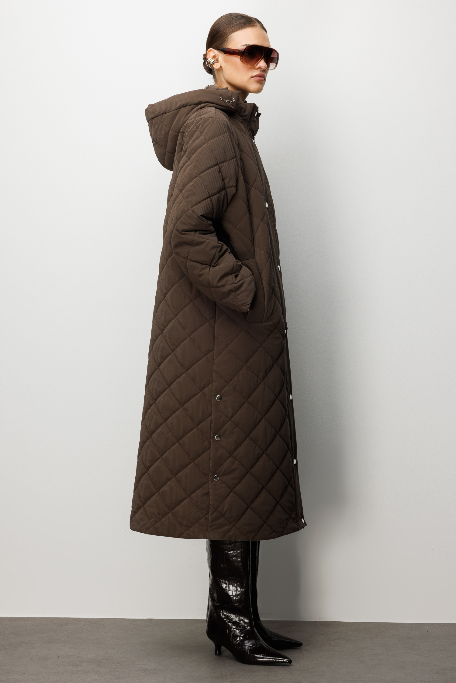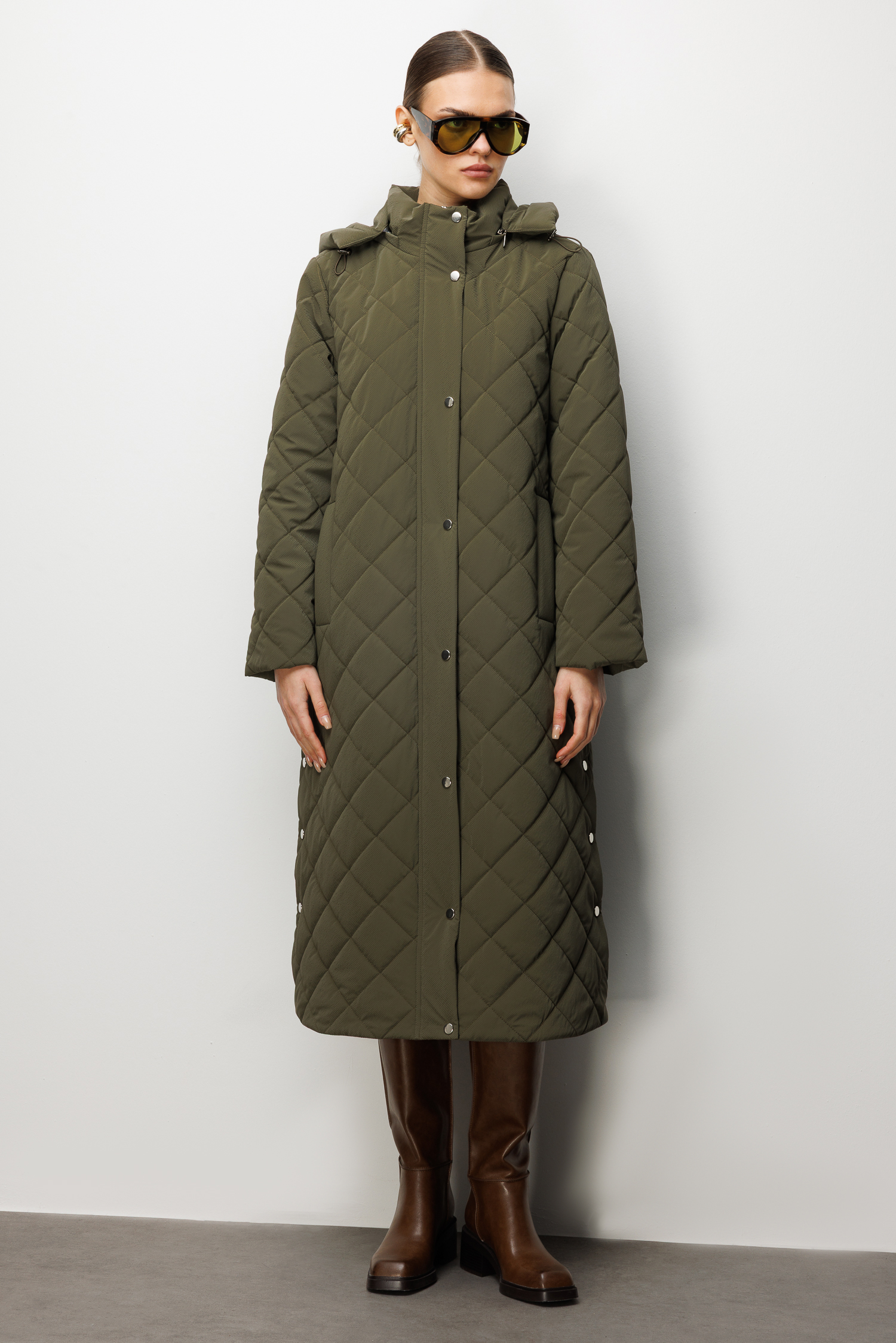Trenç Kapüşonlu Uzun Kapitone Kaban 5921