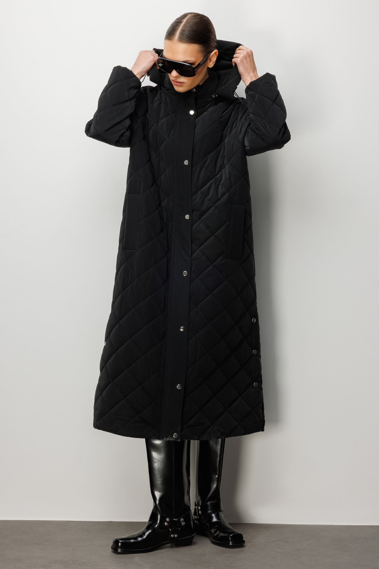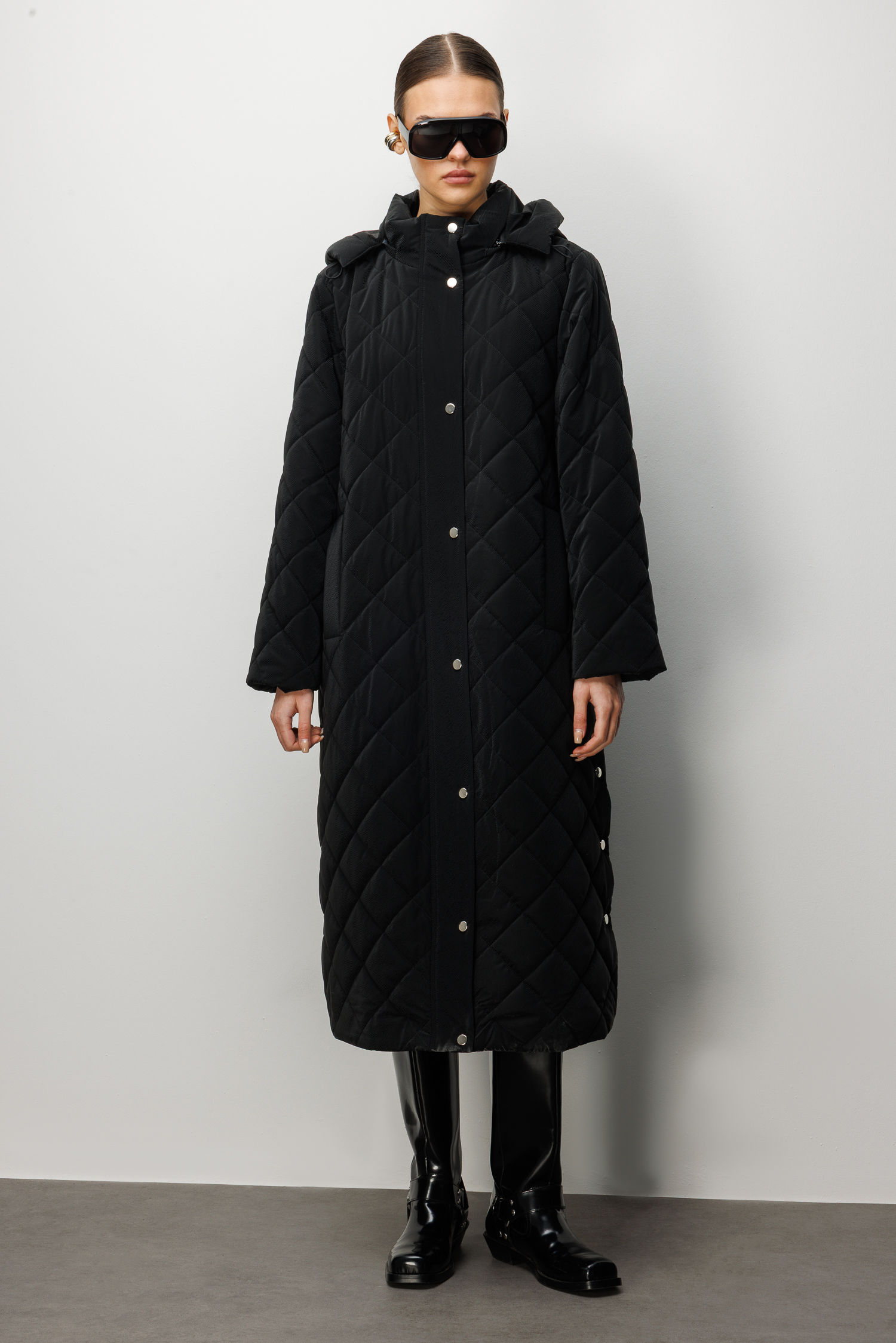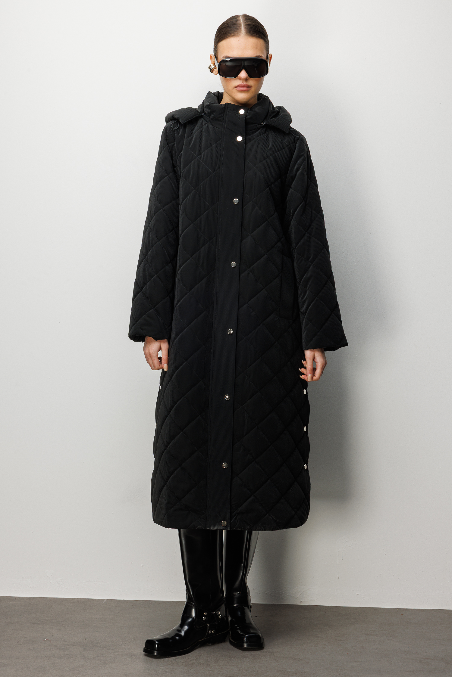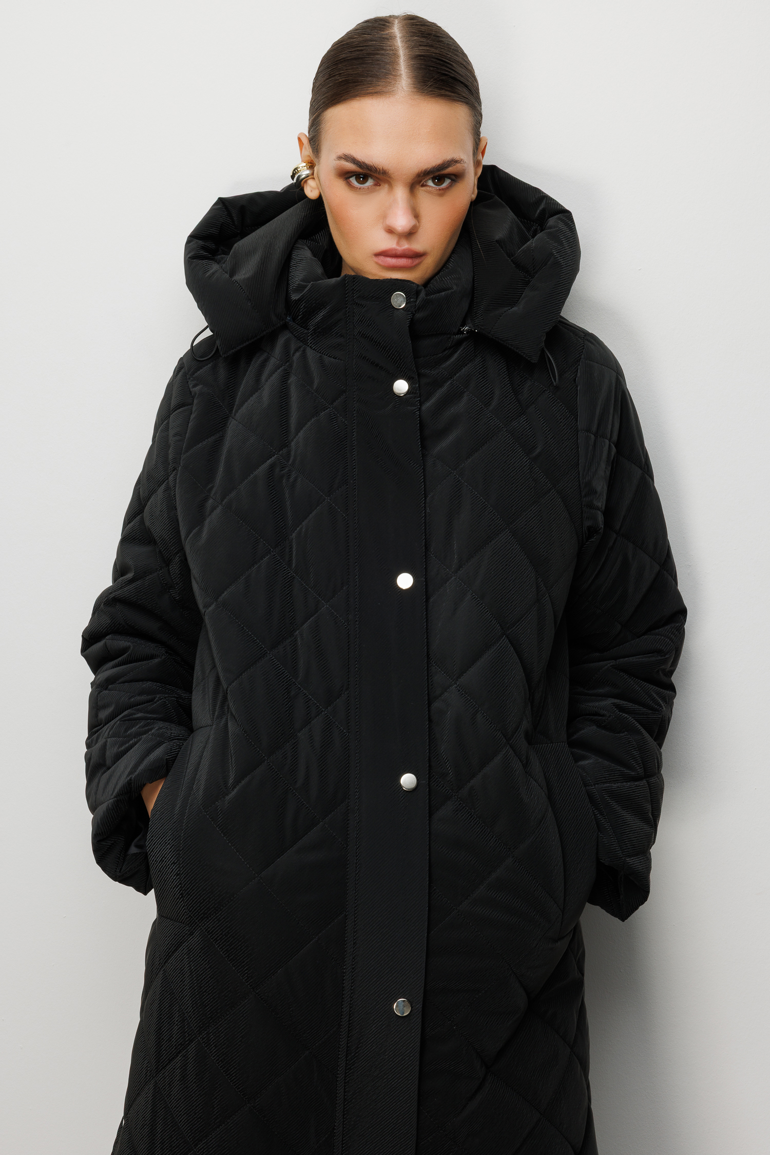 Trenç Kapüşonlu Uzun Kapitone Kaban 5921